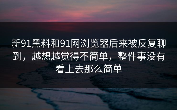 新91黑料和91网浏览器后来被反复聊到,越想越觉得不简单,整件事没有看上去那么简单