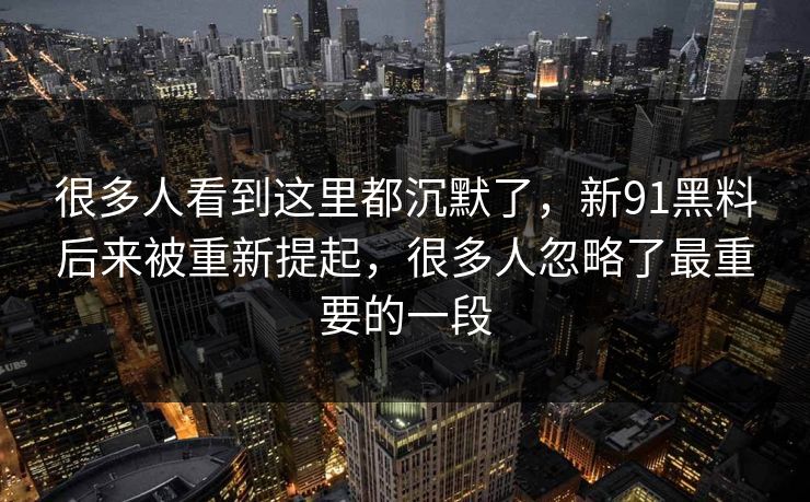 很多人看到这里都沉默了,新91黑料后来被重新提起,很多人忽略了最重要的一段