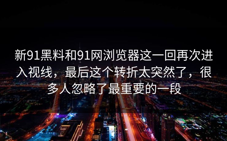 新91黑料和91网浏览器这一回再次进入视线,最后这个转折太突然了,很多人忽略了最重要的一段