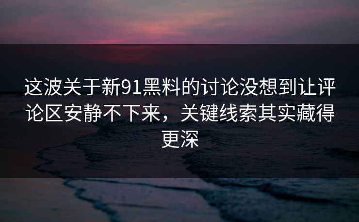这波关于新91黑料的讨论没想到让评论区安静不下来,关键线索其实藏得更深